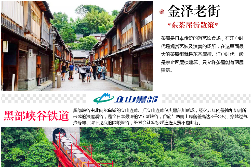 HOTEL→[米其林评鉴三星景点]飞驒小京都~高山市上三之町.传统建筑物保存地→联合国世界文化遗产~[米其林评鉴三星景点]白川乡合掌村→金泽[米其林评鉴三星景点]兼六园→东茶屋街→富山