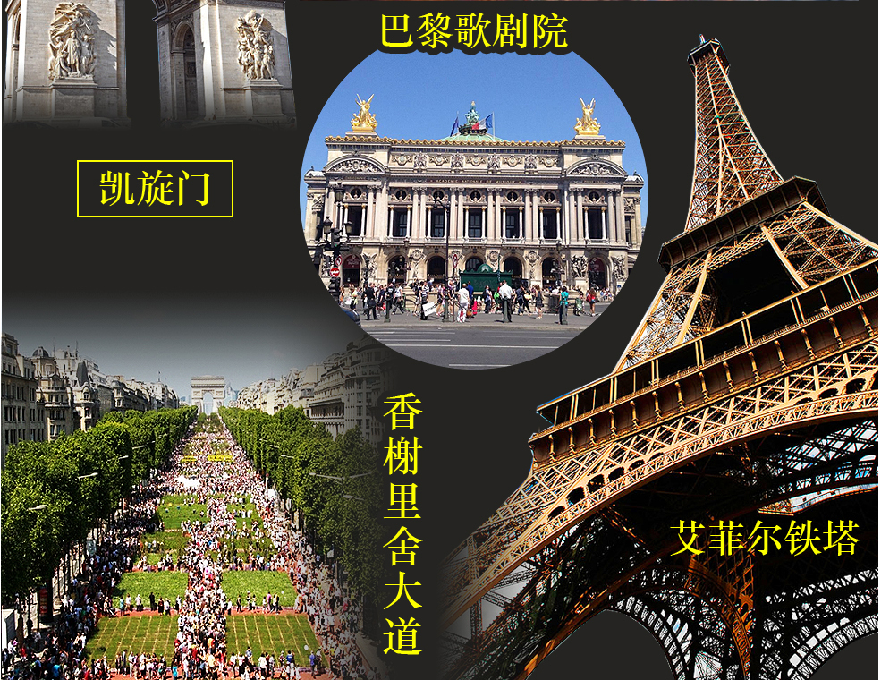 ■【下车参观】:凯旋门、艾菲尔铁塔。