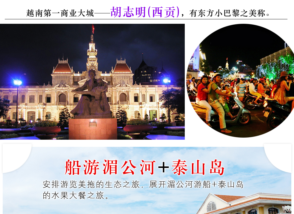 胡志明→美拖【湄公河游船+泰山岛】→头顿