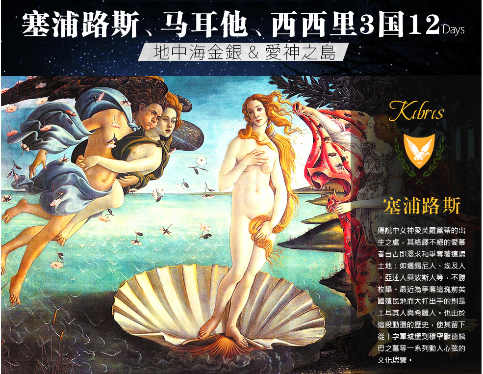 塞浦路斯、马耳他、西西里3国12天游