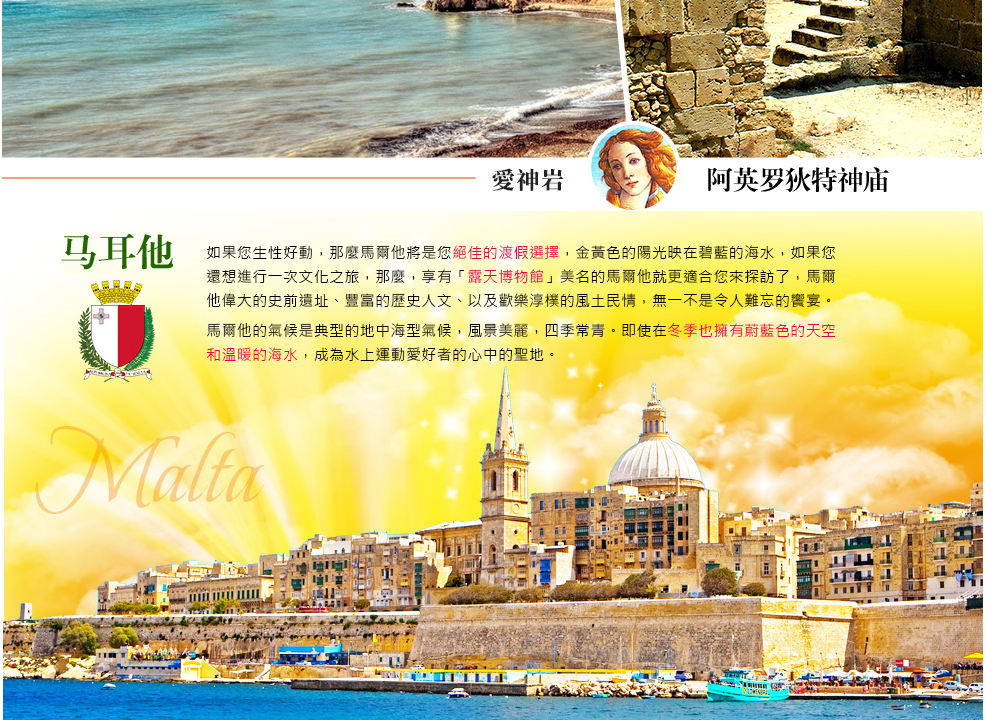 ★地中海的心脏 - 马耳他 ,热情的太阳、清澈的海水、美丽的沙滩、辉煌的文化古迹。