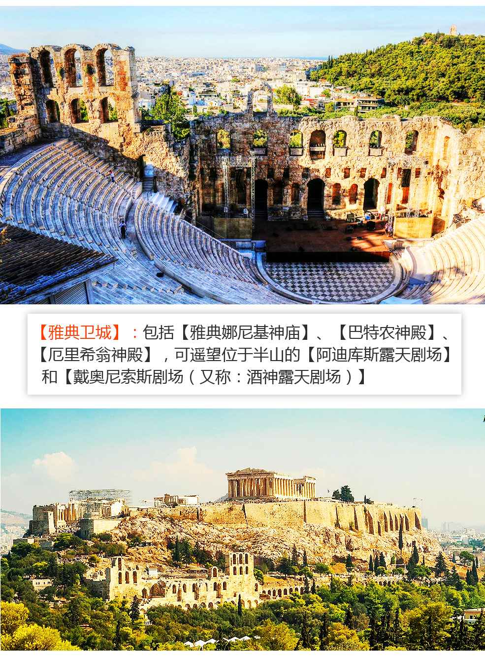 是日安抵雅典,雅典是欧洲文明的摇篮,历史遗迹遍布各处。抵达后前往参观有着2500年历史的人文奇迹--【雅典卫城ACROPOLIS】:包括【雅典娜尼基神庙】、【巴特农神殿】、【厄里希翁神殿】,可遥望位于半山的【阿迪库斯露天剧场】和【戴奥尼索斯剧场(又称:酒神露天剧场)】;随后前往参观雅典最古老的神殿【奥林匹克宙斯神殿】。