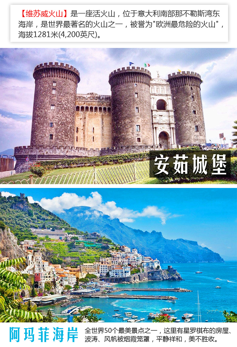 那不勒斯-维苏威火山-阿玛菲-19公里-波西塔诺小镇-18公里-那不勒斯