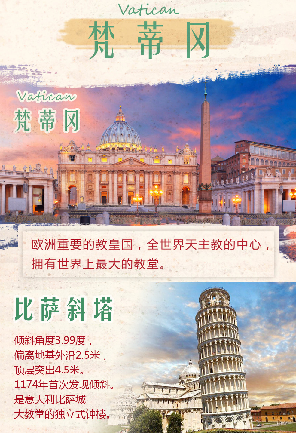 早餐后开始欣赏罗马的精髓部分:外观【古罗马的废墟】、【斗兽场】、【君士坦丁凯旋门】,随后前往观赏幸福喷泉-【许愿池】(以上景点总游览时间约1.5小时)。随后前往天主教的朝圣地、世界最小的国家-梵蒂冈,游览【梵蒂冈大广场】和参观世界上最大的天主教堂之一的【圣彼得大教堂】(以上共约1.5小时,如遇宗教活动,教堂不对外开放,恕不另行通知,为方便客人游览,是日午餐自理)。坐在西班牙台阶上,忆《罗马假日》浪漫场景,观破船喷泉;参观万神殿这一古罗马建筑的杰出代表作,领略罗马的昔日与今朝,游毕前往意大利最富饶的托斯卡纳地区。