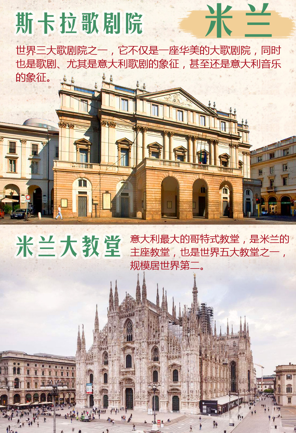 早餐后游览米兰,外观世界三大歌剧院之一的【斯卡拉歌剧院】以及意大利最大的哥特式教堂-【米兰大教堂】,后游览【埃马努埃莱二世长廊】(约1.5小时)。游毕前往威尼斯,在全球知名奢侈品免税商场自由购物后入住酒店休息。