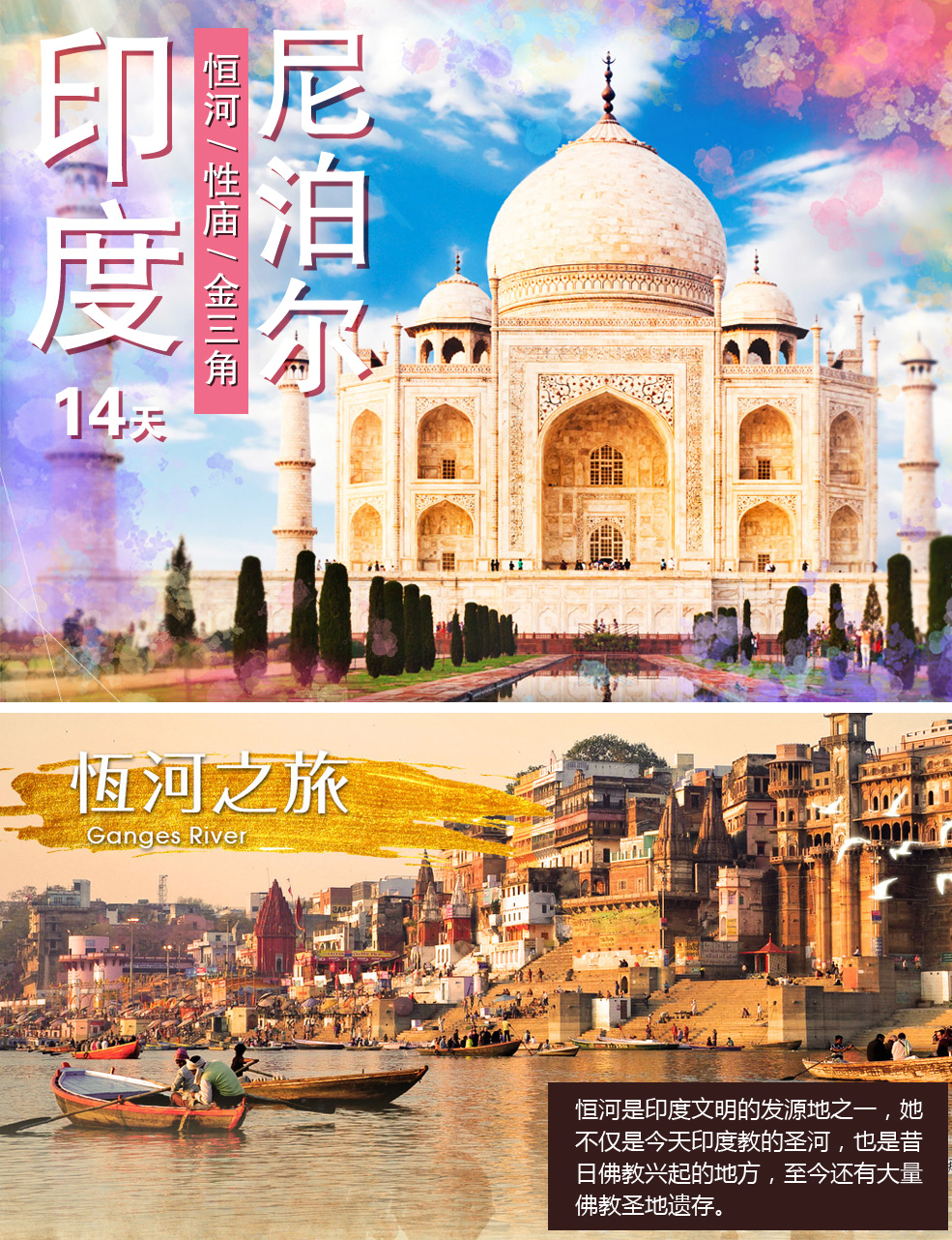 印度恒河/性庙/金三角(阿格拉/斋普尔)+尼泊尔14天