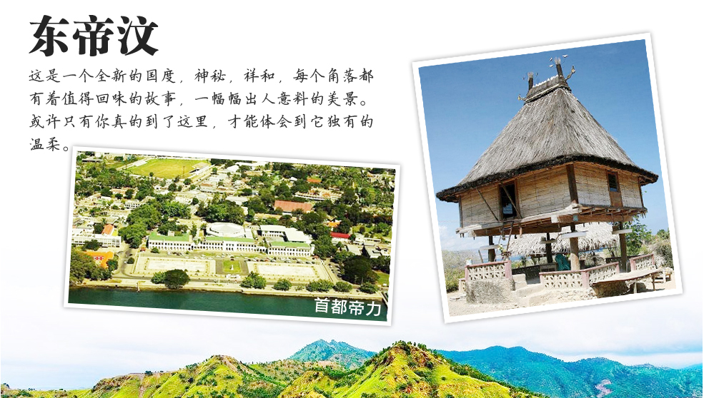 早餐后,乘机飞往东帝汶首都帝力。抵达后乘车前往茅碧斯,途中我们将经过帝力背景山,这段路程您可以俯瞰首都全景、帝力湾及阿陶罗岛。之后继续前往Dare二战纪念碑——二战期间,东帝汶原著居民与盟军联合抗击日本侵略并有超过4万人牺牲在这里;后我们将抵达茅碧斯——位于东帝汶中央山脉地区,以农业为主,为首都提供丰富的蔬菜资源,在这里您可以看到传统的用竹子和泥浆结合制成的锥形顶房屋,当地人称之为“Manbae”;参观当地传统村落,了解当地人的生活及东帝汶的传统文化,晚餐后入住酒店休息。
