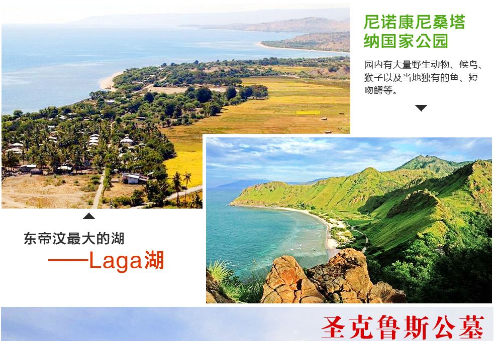 早餐后,乘车前往东帝汶最大的湖——Laga湖;游览尼诺康尼桑塔纳国家公园,园内有大量野生动物、候鸟、猴子以及当地独有的鱼、短吻鳄等;之后乘船前往雅科岛,在这里您可以进行游泳、浮潜等活动。后乘船返回晚餐后入住酒店休息。