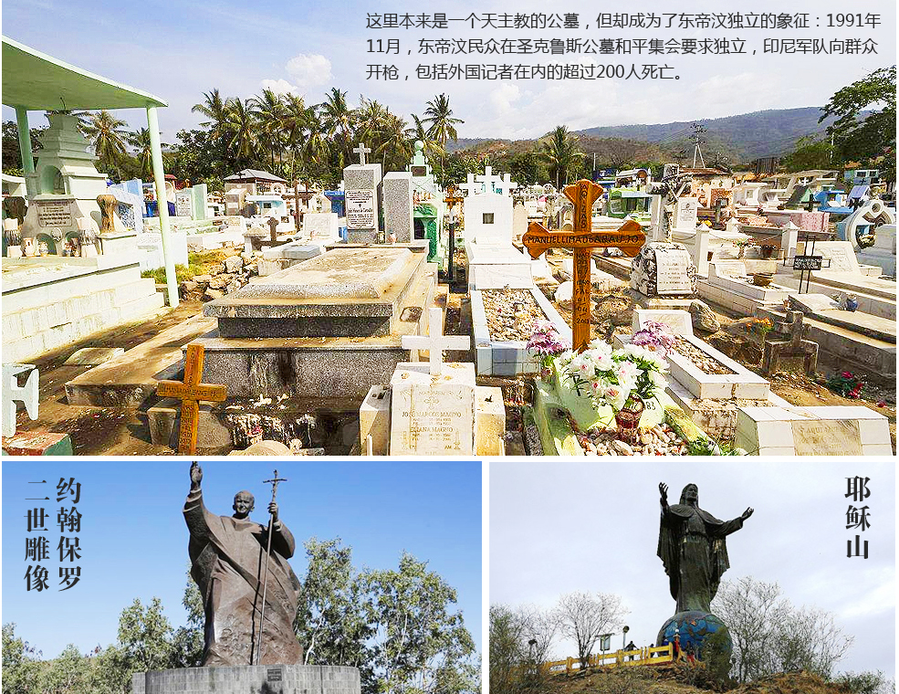 早餐后参观圣克鲁斯公墓——这里本来是一个天主教的公墓,但却成为了东帝汶独立的象征:1991年11月,东帝汶民众在圣克鲁斯公墓和平集会要求独立,印尼军队向群众开枪,包括外国记者在内的超过200人死亡。之后,联合国介入,东帝汶得以最终独立;参观反抗博物馆、约翰保罗二世雕像、耶稣山——帝力的标志性景观,因为有27米的耶稣像而得名,只是这个耶稣像饱受争议,它是印尼入侵东帝汶时候修建的雕像,27米高代表的是当时印度尼西亚的27个省份,东帝汶独立以后,27这个数字有点尴尬;之后前往机场搭乘航班经巴厘岛返回上海,结束此次印尼+东帝汶深度游。若使用东方航空航班则第11天返回上海。